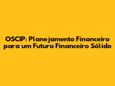 OSCIP: Planejamento Financeiro Para Um Futuro Financeiro Sólido