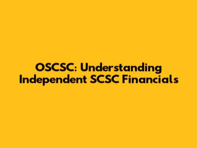 OSCSC: Understanding Independent SCSC Financials