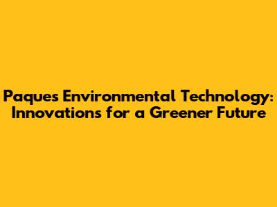 Paques Environmental Technology: Innovations For A Greener Future