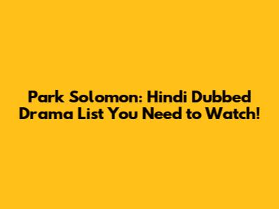 Park Solomon Drama List Available in Hindi