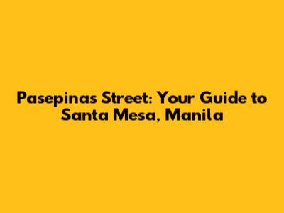 Let's dive into everything you need to know about Pasepinas Street in Santa Mesa, Manila. This vibrant and bustling street is a key part of the Santa Mesa community, offering a mix of residential areas, commercial establishments, and local attractions. Whether you're planning a visit, considering moving here, or just curious about this area, this guide will give you the insights you need.