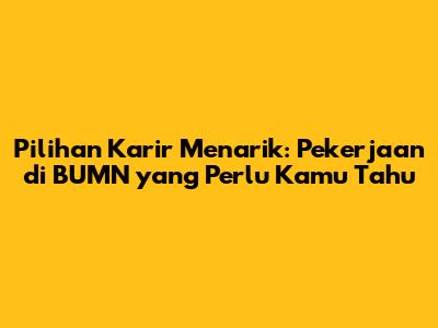 Memilih karir yang tepat adalah langkah penting dalam hidup. Salah satu opsi yang menarik adalah bekerja di Badan Usaha Milik Negara (BUMN). BUMN menawarkan stabilitas, kesempatan berkembang, dan kontribusi nyata terhadap pembangunan negara. Tapi, apa saja sih sebenarnya pekerjaan di bidang BUMN yang bisa kamu incar? Yuk, kita bahas lebih dalam!