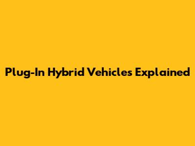 Plug-In Hybrid Vehicles Explained