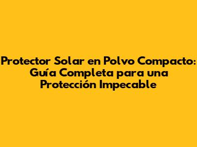 Protector Solar En Polvo Compacto: Guía Completa Para Una Protección Impecable