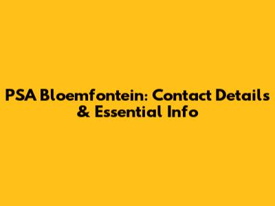 PSA Bloemfontein: Contact Details & Essential Info