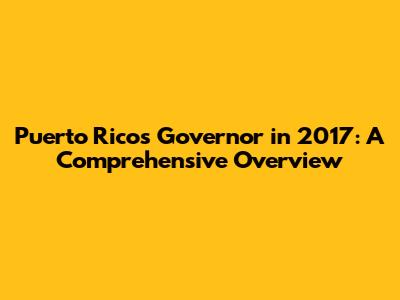 Puerto Rico's Governor In 2017: A Look Back