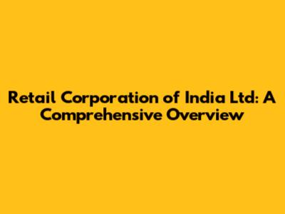 Retail Corporation Of India Ltd: A Comprehensive Overview