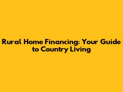 Dreaming of wide-open spaces, fresh air, and a slower pace of life? Rural home financing can make that dream a reality! But navigating the world of mortgages for properties outside the city limits can be a bit different than securing a loan for a suburban house. Don't worry, guys! This guide will walk you through everything you need to know about financing your rural dream home.
