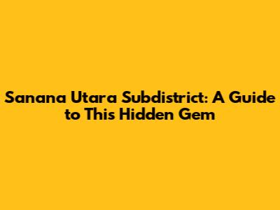 Sanana Utara Subdistrict: A Guide To This Hidden Gem