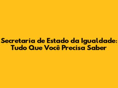 Secretaria De Estado Da Igualdade: Tudo Que Você Precisa Saber