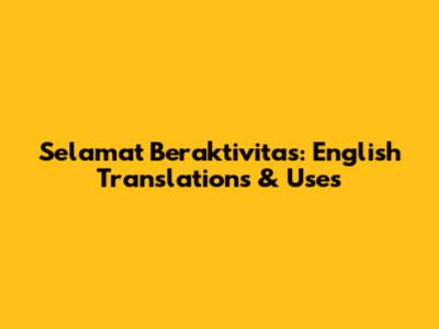 Selamat Beraktivitas: English Translations & Uses