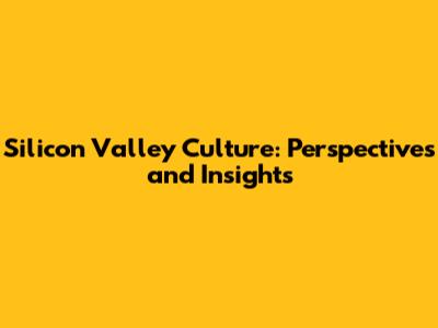 Silicon Valley Culture: Perspectives And Insights