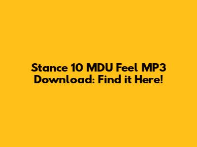 Stance 10 MDU Feel MP3 Download: Find It Here!