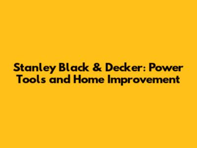 Stanley Black & Decker: Power Tools And Home Improvement