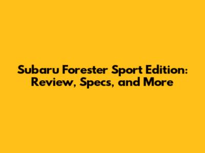 Subaru Forester Sport Edition: Review, Specs, And More