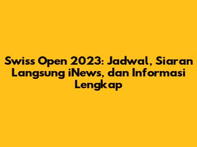 Swiss Open 2023 telah menjadi sorotan utama bagi para penggemar bulu tangkis di seluruh dunia. Bagi kalian yang penasaran dengan jadwal lengkap, siaran langsung di iNews, serta informasi penting lainnya, artikel ini adalah panduan lengkap yang kalian butuhkan. Mari kita telusuri detail menarik seputar turnamen bergengsi ini, mulai dari jadwal pertandingan, pemain unggulan, hingga peluang para atlet Indonesia untuk meraih kemenangan. Jangan lewatkan kesempatan untuk menyaksikan aksi-aksi menegangkan dari para pebulu tangkis terbaik dunia!