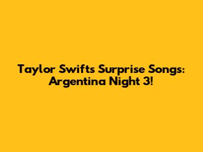 Alright Swifties, let's dive into the enchanting world of Taylor Swift's Eras Tour, specifically focusing on the Argentina Night 3 surprise songs! If you're anything like me, you've been refreshing social media, eagerly waiting for the acoustic gems Taylor unveils each night. The surprise song segment has become a cornerstone of the Eras Tour, a moment of pure, unscripted magic where Taylor connects with her audience through raw emotion and stripped-down versions of her incredible discography. Each night brings a fresh wave of speculation and excitement, making every concert a unique and unforgettable experience. So, buckle up, because we're about to dissect the magic of Argentina Night 3 and explore why these surprise songs are so incredibly special.