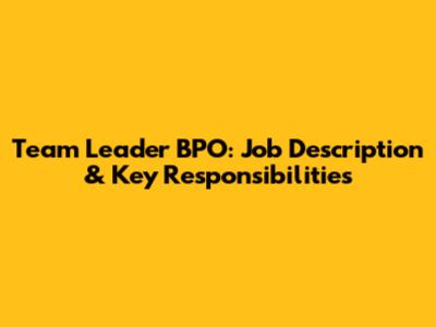 Team Leader BPO: Job Description & Key Responsibilities