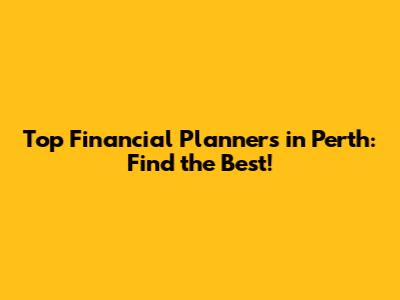 Top Financial Planners In Perth: Find The Best!