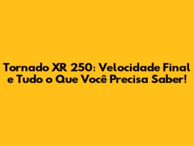 Tornado XR 250: Velocidade Final E Tudo O Que Você Precisa Saber!
