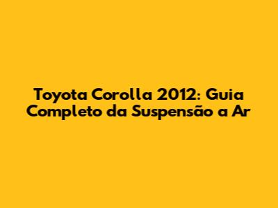 Toyota Corolla 2012: Guia Completo Da Suspensão A Ar