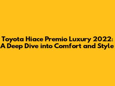 Hey there, gearheads and luxury seekers! Let's dive headfirst into the world of the Toyota Hiace Premio Luxury 2022. This isn't just your average van, guys. We're talking about a vehicle that seamlessly blends performance, comfort, and style, all wrapped up in a package that's perfect for both business and leisure. Seriously, the Hiace Premio Luxury is like the VIP lounge on wheels, offering a driving experience that’s as smooth as butter and as stylish as a runway model. Buckle up, because we're about to explore every nook and cranny of this awesome vehicle!