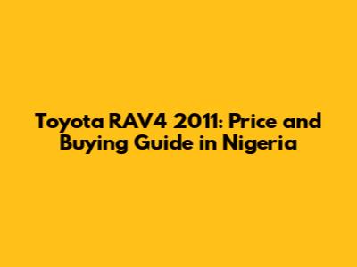 Understanding the Toyota RAV4 2011 in Nigeria