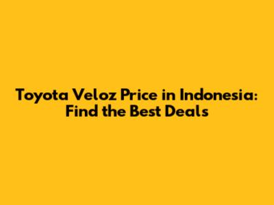 Toyota Veloz Price In Indonesia: Find The Best Deals