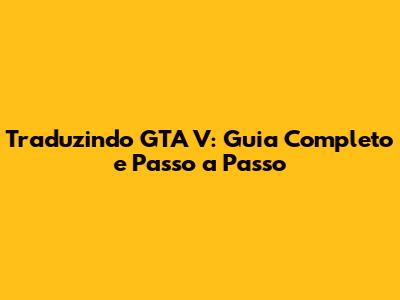 Traduzindo GTA V: Guia Completo E Passo A Passo