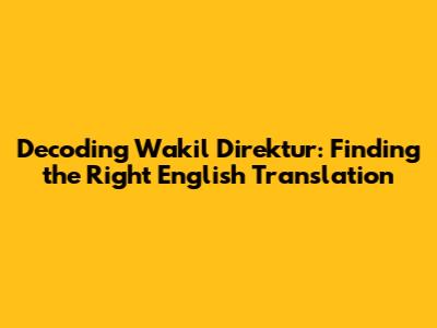 Hey guys! Ever wondered about the English translation of 'Wakil Direktur'? It's a pretty common Indonesian term, but figuring out the best way to say it in English can be a little tricky. Let's dive in and explore the nuances, shall we? We'll look at the different options, when to use each one, and why it matters. Basically, we are trying to find the best way to express the role of a 'Wakil Direktur' in English. It's like, what do you call this person in an English-speaking environment? This is important because the right translation helps avoid misunderstandings and ensures clear communication, whether you're dealing with international business, academic collaborations, or just general conversations.