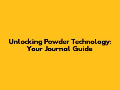Unlocking Powder Technology: Your Journal Guide