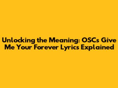 Unlocking The Meaning: OSC's 'Give Me Your Forever' Lyrics Explained