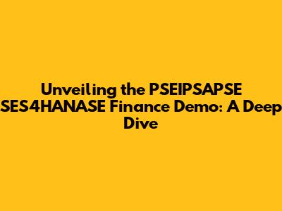 Unveiling The PSEIPSAPSE SES4HANASE Finance Demo: A Deep Dive