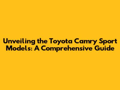 Unveiling The Toyota Camry Sport Models: A Comprehensive Guide