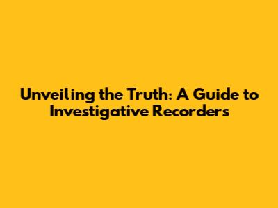 Unveiling The Truth: A Guide To Investigative Recorders