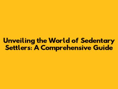 Unveiling The World Of Sedentary Settlers: A Comprehensive Guide