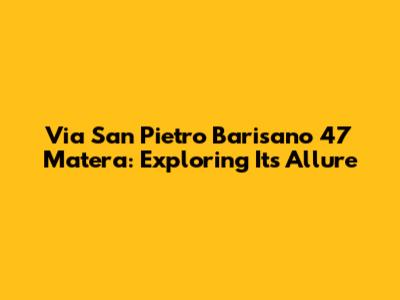 Hey guys! Ever heard of Via San Pietro Barisano 47 in Matera? If you haven't, you're in for a treat. This address isn't just a random set of numbers; it's a gateway to the heart of Matera, a city in Italy that's like stepping back in time. This guide is your key to unlocking the secrets of this amazing place. We're going to dive deep into what makes Via San Pietro Barisano 47 so special, from its historical significance to the experiences you can have there. So, buckle up, and let's start this adventure together!